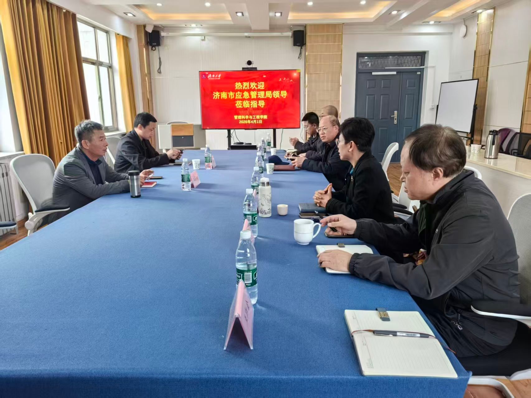 为深入贯彻落实习近平总书记关于应急管理重要论述,扎实推进校地深度融合,助力应急管理体系和能力现代化建设,4 月 1 日下午,济南市应急管理局规划和预案管理处处长王喜春、副处长张亚楠一行到访果冻传媒 ,围绕应急管理领域人才培养、科研创新、社会服务等核心工作开展座谈交流。果冻传媒 领导班子及相关专业教师代表参会,会议由果冻传媒 院长王悦主持。