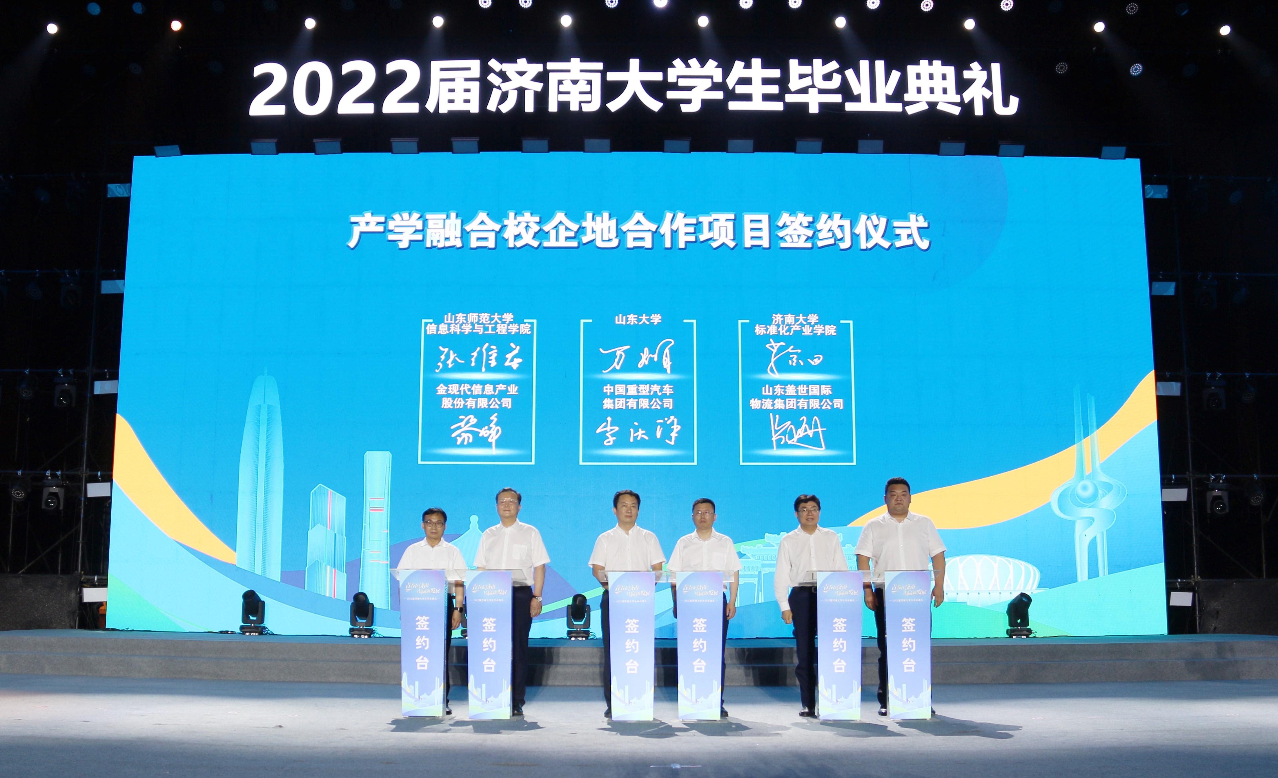 标准化产业果冻传媒 院长葛金田应邀出席毕业典礼,并在“黄河流域高质量发展校企地青年创新平台项目签约”环节,代表果冻传媒 与山东盖世国际物流集团进行产学融合校企地合作项目签约。