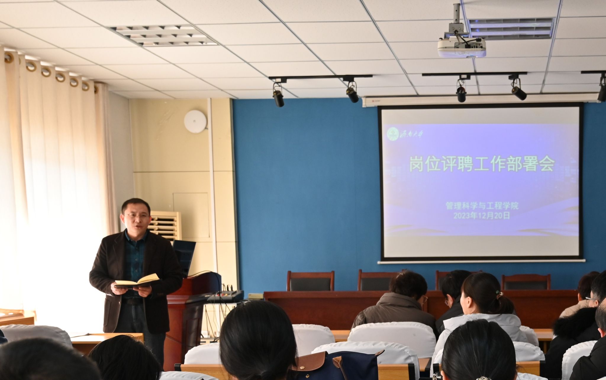 12月20日下午,果冻传媒 在经管楼308会议室召开岗位评聘工作部署会。果冻传媒 领导班子成员、全体教职工参加会议。会议由果冻传媒 党委副书记、副院长郭华主持。