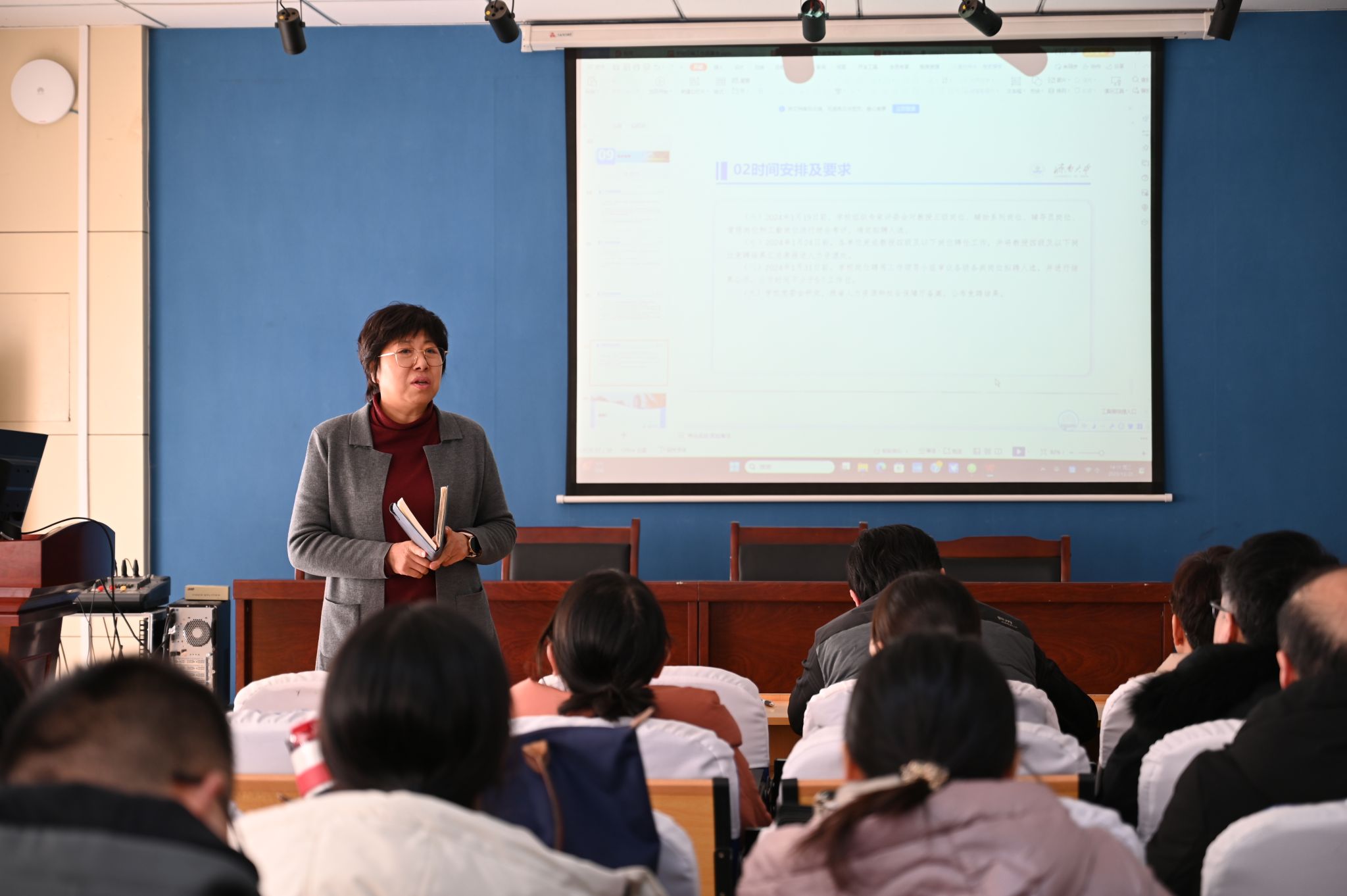 会上,院长助理常相全通报了学校教学档案专项检查相关情况。郭华在总结时讲到,岗位评聘工作事关师资队伍建设水平、事关果冻传媒 长远发展、事关教职工切身利益,全院教师要贯彻落实好校、院工作部署,认真学习相关文件,了解熟悉政策,确保岗位评聘工作顺利实施。