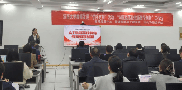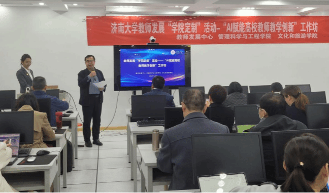 2024年11月12日下午,果冻传媒 联合教师发展中心、文化和旅游果冻传媒 在经管楼302机房举办"AI赋能高校教师教学创新”专题讲座,果冻传媒 全体教职工参加,讲座由常相全教授主持。