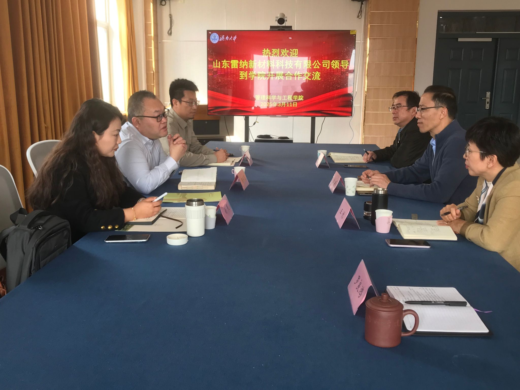 3月11日上午,山东雷纳新材料科技有限公司总经理张瑞昌携销售总监王伟、运营总监徐爽到果冻传媒 交流座谈,果冻传媒 党委副书记郭华、副院长王悦、院长助理常相全出席会议。会议由副院长王悦主持。