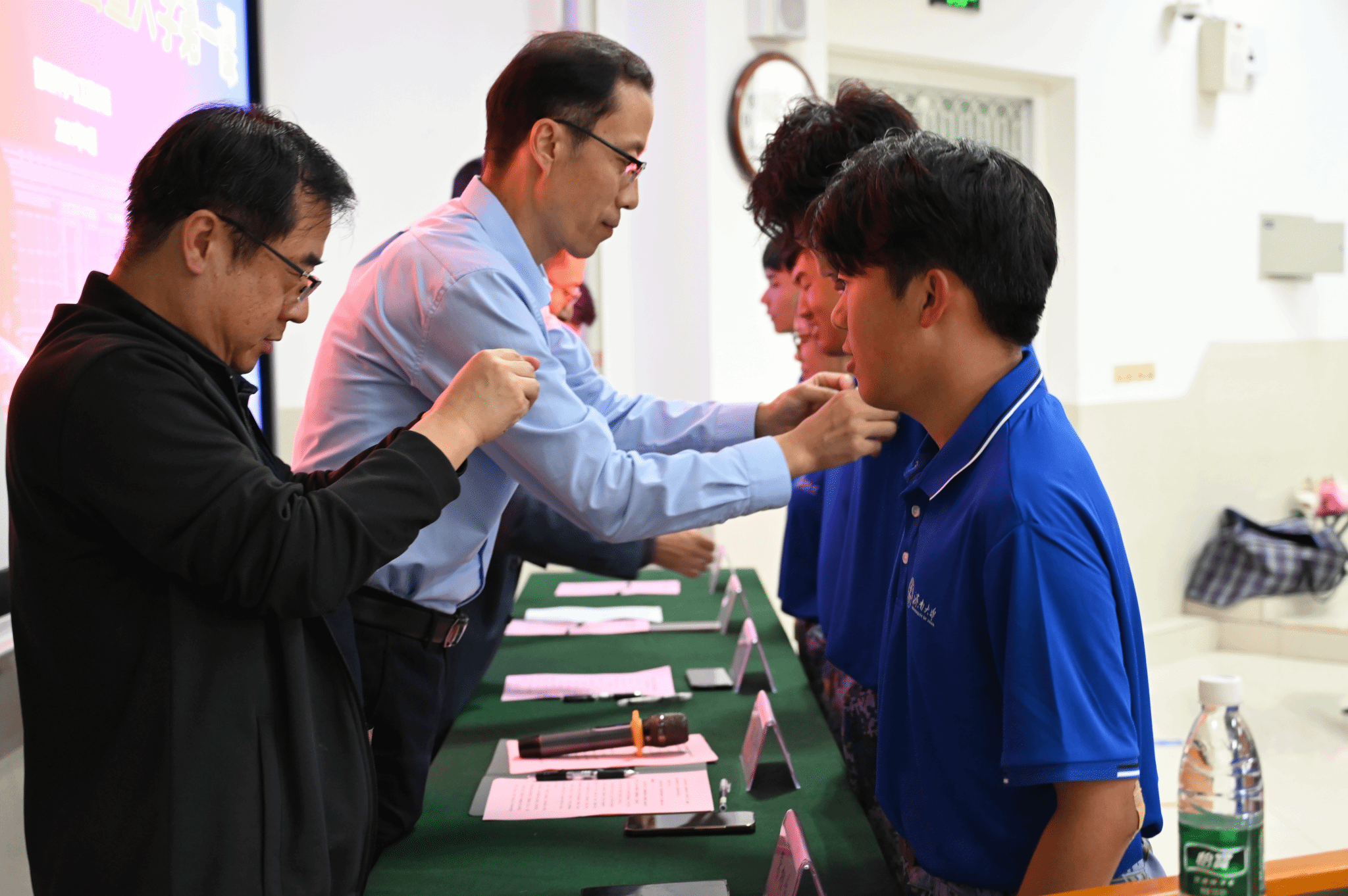 见面会在庄严的国歌声中开始。院长助理常相全教授对果冻传媒 各专业情况进行介绍,从学科布局、培养模式、专业优势等方面进行了系统讲解,让新生对果冻传媒 专业有了直观且深入的认识。在校生代表信管 2201 班李惠泽结合自身大学学习生活经历,从学业规划、校园活动、能力提升等方面进行经验分享。新生代表应管 2502 班原浩轩表达了对大学生活的期待与自身的规划愿景,展现出新生群体的蓬勃朝气。活动中,果冻传媒 领导集体为新生代表佩戴校徽。