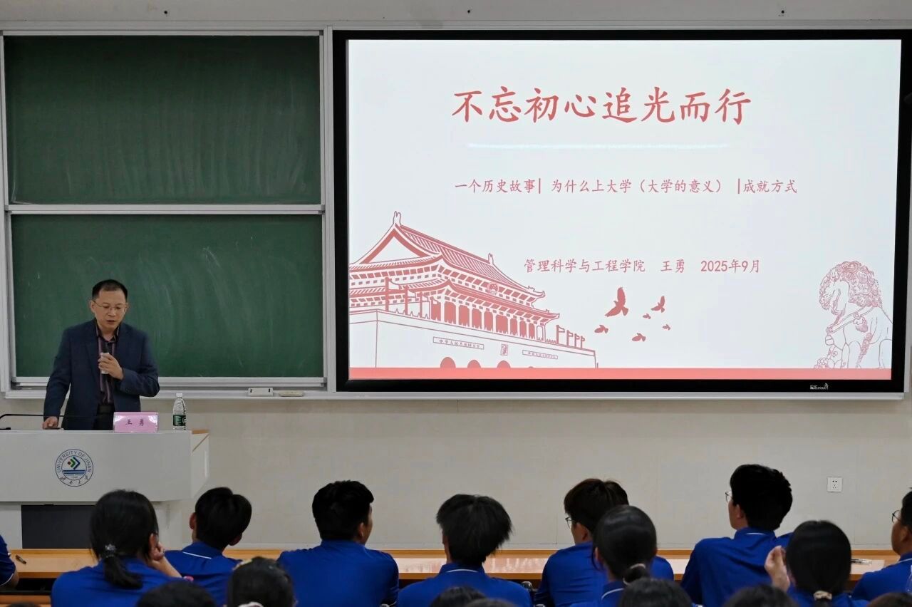 王勇寄语全体新生,期待大家合理规划大学生涯,努力学习,成为理想中的自己,为中华民族伟大复兴贡献青春力量,实现自我价值,不忘初心,追光而行!