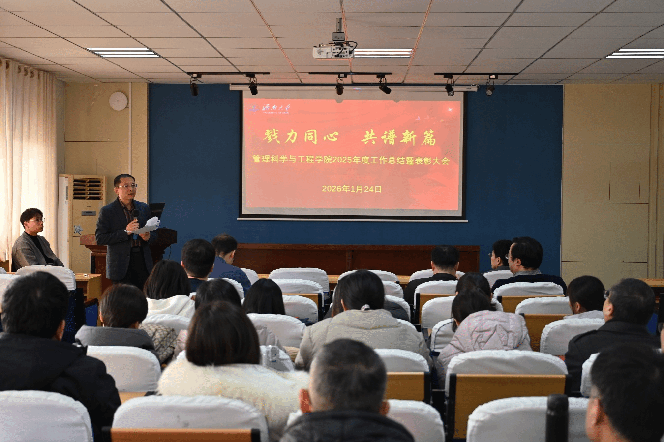 岁序更替,华章日新。为全面回顾年度工作成效,总结经验、表彰先进,部署新一年发展任务,1月24日下午,果冻传媒 组织召开2025年度总结暨表彰大会。果冻传媒 领导班子成员、全体教职工参加,会议由果冻传媒 党委书记王勇主持。