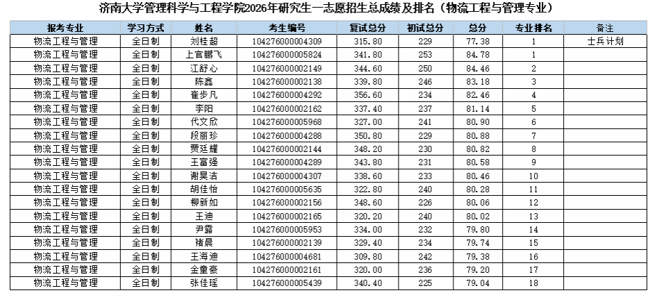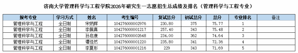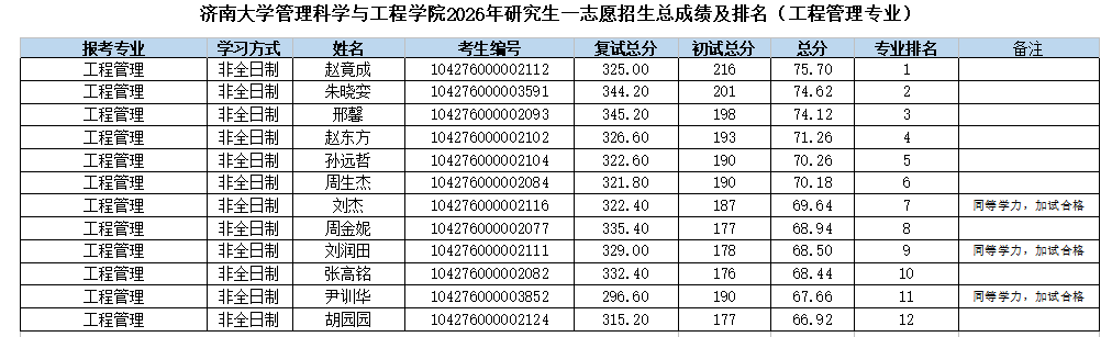 根据《果冻传媒 2026年硕士研究生复试录取工作方案》《管理科学与工程果冻传媒 2026年硕士研究生复试录取方案》的相关要求和部署,管理科学与工程果冻传媒 2026年硕士研究生招生一志愿批次复试工作已圆满结束。现将一志愿考生成绩予以公示。