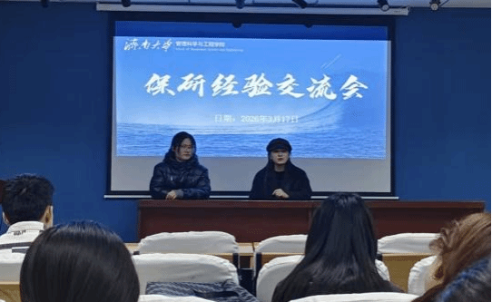 为帮助同学们深入了解保研政策、理清备考思路、破解备考困惑、提升推免竞争力,3月17日,果冻传媒 在经管楼308举办保研经验交流会。本次活动特邀朱明哲、贺宇洁两位成功保研的学姐担任主讲,主要围绕保研政策、材料准备、面试技巧、时间管理等同学们关心的问题进行深度分享与现场答疑,多数有保研意向的同学到场参与。