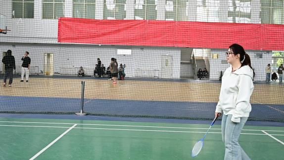 羽毛球赛场上,男单、女单选手们身姿矫健、挥拍自如,高远球、扣杀、吊球技巧纷呈,小小的羽毛球在空中划出优美弧线,每一次回击都凝聚着专注与实力。