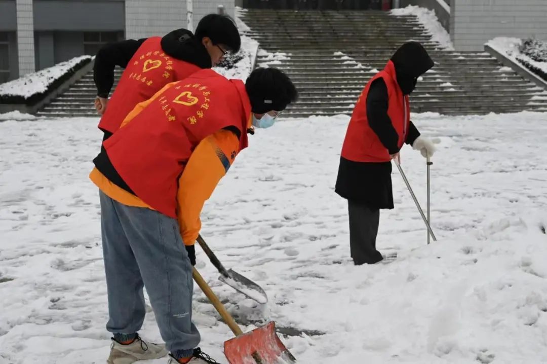星星之火,可以燎原。随着活动的进行,越来越多的同学自发地加入道路清雪除冰行动中。冰雪虽严寒,热情可感染,热情奉献的青年志愿者们凝聚着风雨同舟的管科力量,展现着管科青年勇作为、敢担当,争先锋的积极形象,冲在清冰除雪第一线,用实际行动保障校园安全!