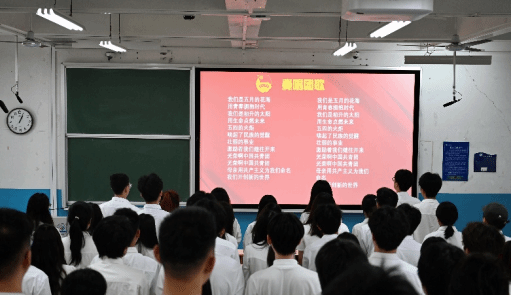 最后,全体代表起立,齐唱团歌《光荣啊,中国共青团》,大会在雄壮的团歌中结束。
