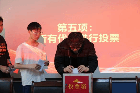 会议进入投票环节,在投票选举环节,全体代表以等额投票的方式,先后选举出席果冻传媒 第八次学生代表大会、果冻传媒 第七次研究生代表大会的代表及常任代表。代表们有序上台,将投票表投入对应投票箱,充分行使了自己的民主权利。投票结束后,监票员和计票员迅速展开紧张的统计工作。