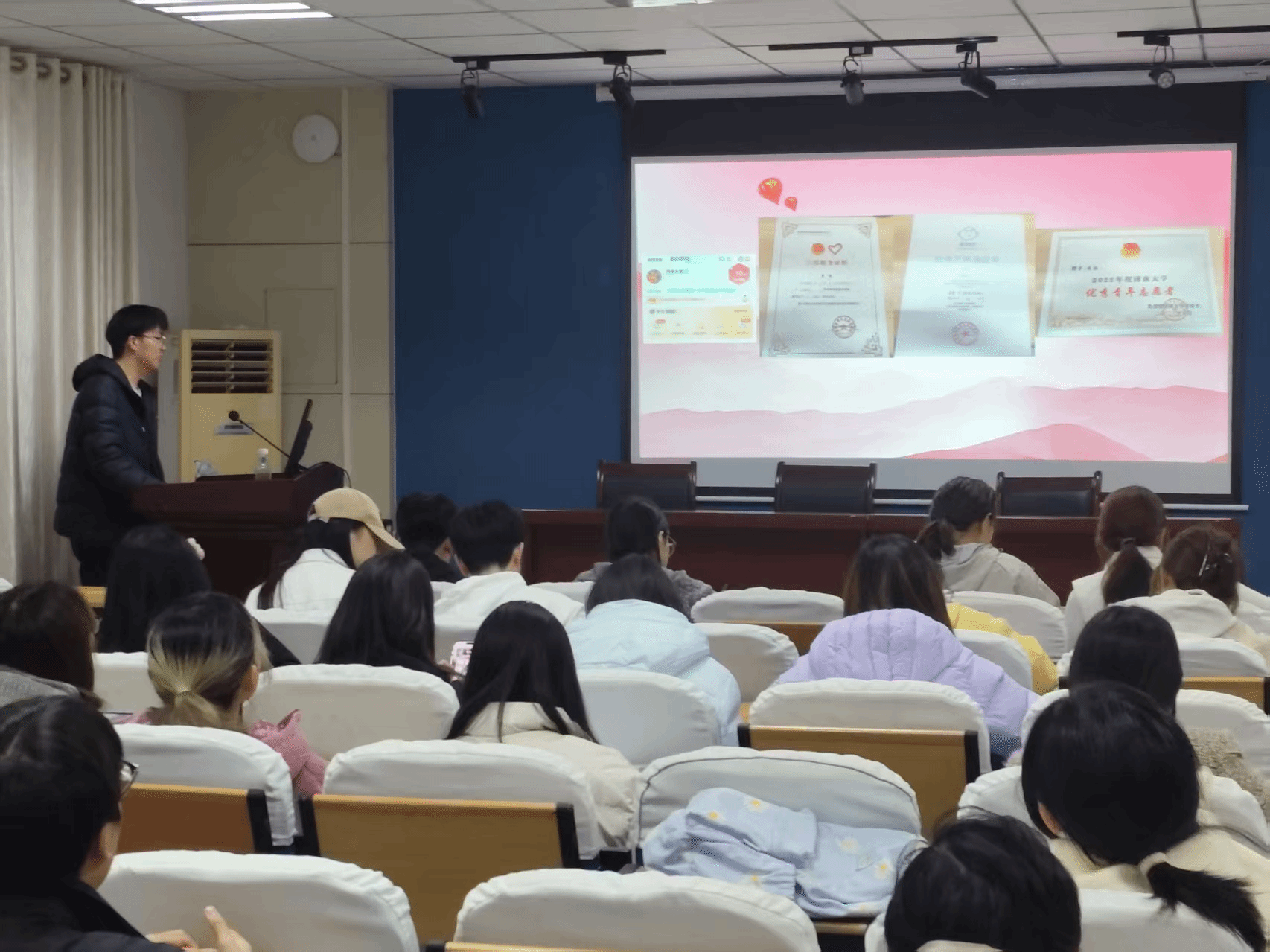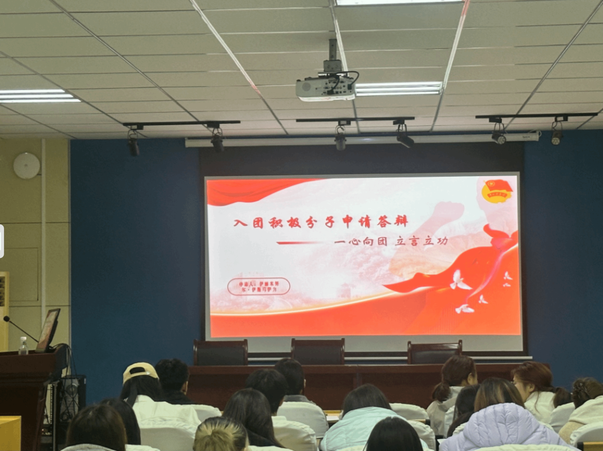 答辩过程中,入团申请人依次登台,围绕六大核心维度系统阐述个人情况:在思想道德层面,他们结合对共青团的深刻认知与入团向往,分享日常学习生活中践行社会主义核心价值观的具体实践,展现坚定的理想信念;在学业表现上,通过成绩排名、进步轨迹等具体数据,直观呈现主动学习的态度与学业成果;在任职经历中,复盘班级班委、学生组织或社团职务的工作内容,讲述从中收获的责任意识与协作能力;在社会实践领域,分享志愿服务、企业实习等经历带来的认知提升,传递青年担当;在文体活动里,回顾体育赛事参赛、文艺节目表演等经历,展现青春活力;在科创探索方面,介绍参与科研项目、学科竞赛的思路与突破,凸显创新潜力。